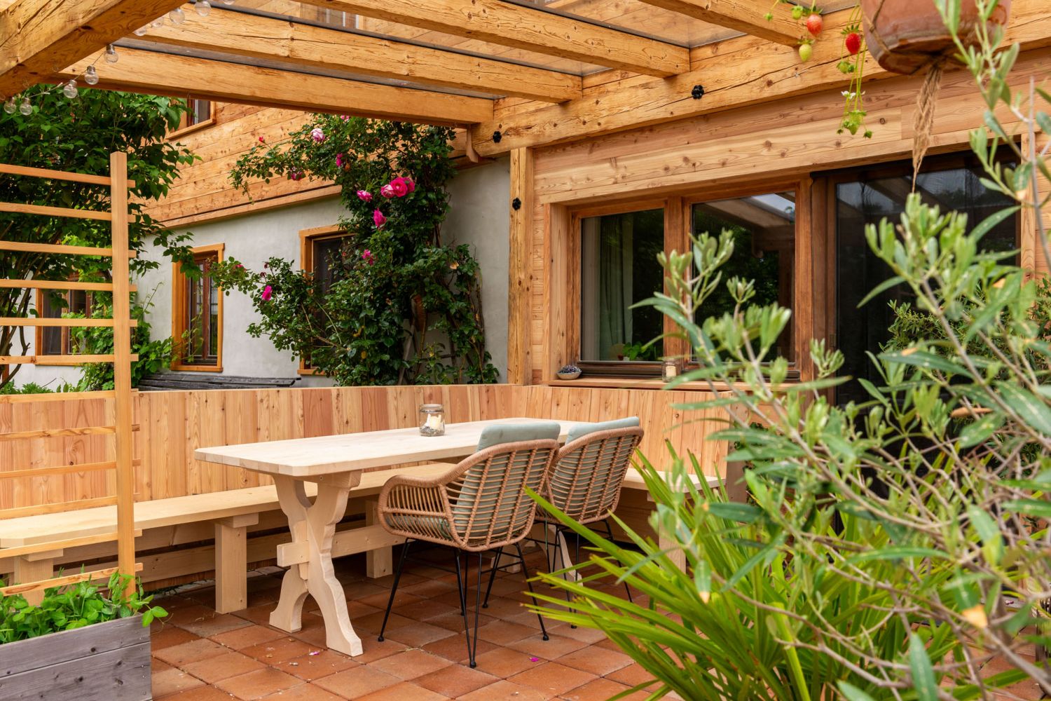 In diesem Referenzprojekt haben wir ein historisches Bauernhaus mit viel Liebe zum Detail saniert und gleichzeitig moderne Akzente gesetzt. Die elegante Pergola aus Retrotimber und die maßgefertigten Balkone verleihen dem Haus eine besondere Note. Die Fassade wurde mit einer hochwertigen, gehackten und gebürsteten Lärchen-Blockwandschalung versehen, die dem Gebäude sowohl einen rustikalen als auch zeitgemäßen Charme verleiht. Abgerundet wird das Gesamtbild durch eingeputzte Holzfensterstöcke, die die Verbindung von Tradition und zeitgenössischem Handwerk perfekt widerspiegeln.